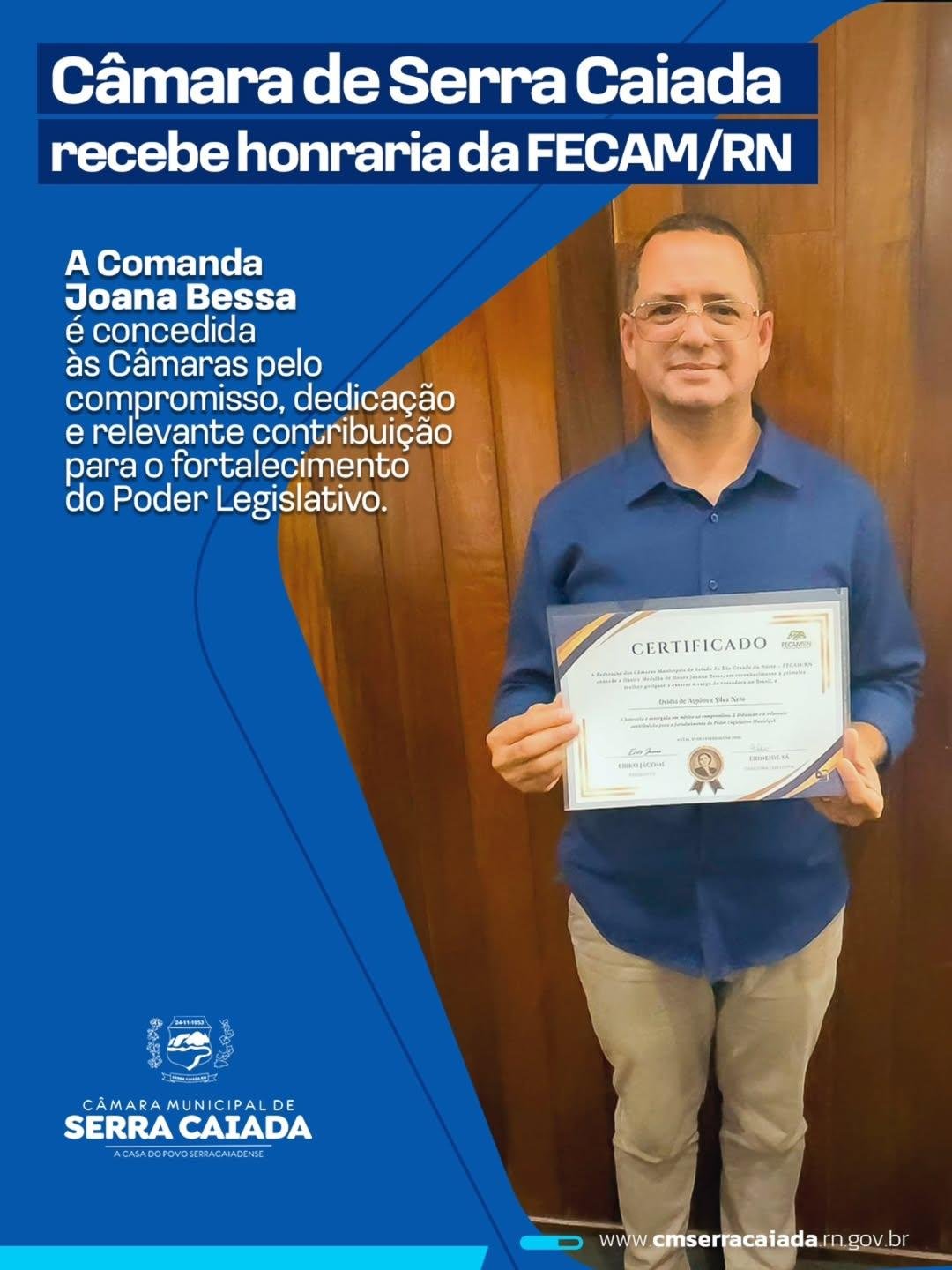 O Presidente da Câmara Municipal de Serra Caiada, Ovídio de Aquino e Silva Neto (Tabelinho da Ambulância), nesta quarta-feira 25 de fevereiro, representou o Poder Legislativo Municipal em solenidade promovida pela Federação das Câmaras Municipais do Estado do Rio Grande do Norte (FECAM/RN),